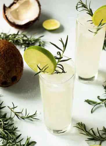 Mix the lemon juice, Vinegar and Syrup. Top it up with soda or aerated water. Add lemon & ginger slices to the serving glass.